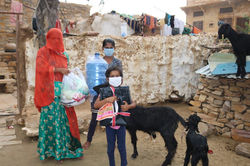 Folk Arts Rajasthan - The Merasi School. Rajasthan, India. The children of the Merasi School are considered untouchables and as such are denied access to most education and services. In Jaisalmer events continue to be sobering. Police violence, a lack of water during blistering hot months plus extreme hunger issues had compelled the COVID pandemic. Funds provided by WBO to the Merasi School and Folk Arts Rajasthan have helped families to meet some of their immediate needs for kitchen staples including water. After a harrowing incident of harassment during lockdown at the Merasi Guesthouse, a demoralized Nawab Khan (18) rallied when assembling food packets. "Knowing we have family outside of Jaisalmer has made a big difference to me”.
